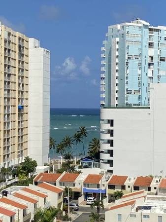 Great Location! No airbnb Right there on the heart of Isla Verde Av. Just walk no need to have a car. Move in now. Enjoy an open living space space corner unit (500 s / f) approx. with 1 bedroom / 1 full bathroom, exterior balcony with gorgeous ocean view. Great Location! Steps to The beach, gated community, 24.7 security guard on duty, pool, kids pool, gym, ping pon area, laundry facilities in the building, road to the international airport with a broad selection of restaurants, bars. parking available, Condo fees 500 per month. No short Term permitted. And Pets friendly. Contact only through email